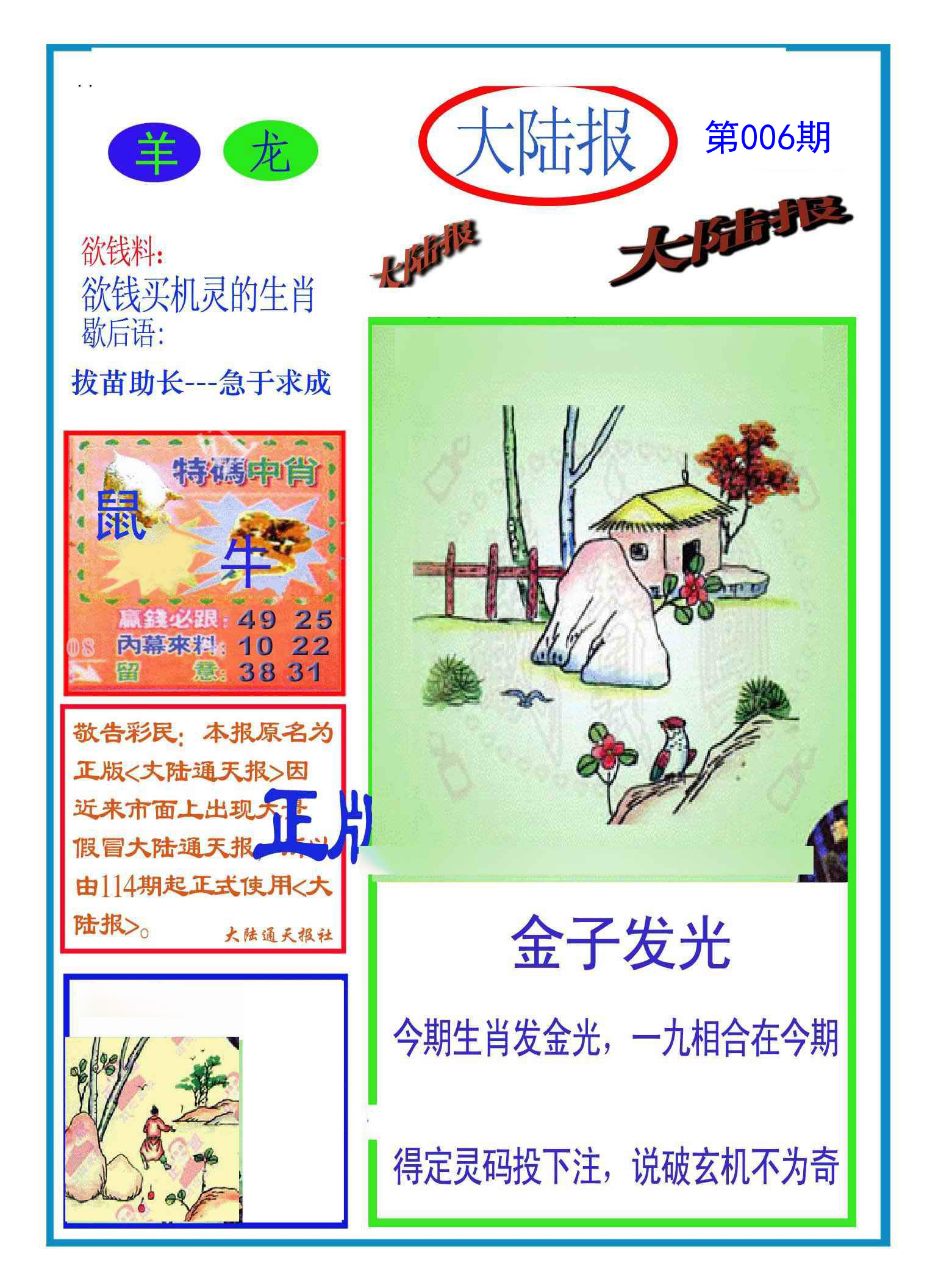 | 005期: ⑥肖 | 龙羊蛇鸡虎鼠 | 龙26中 |