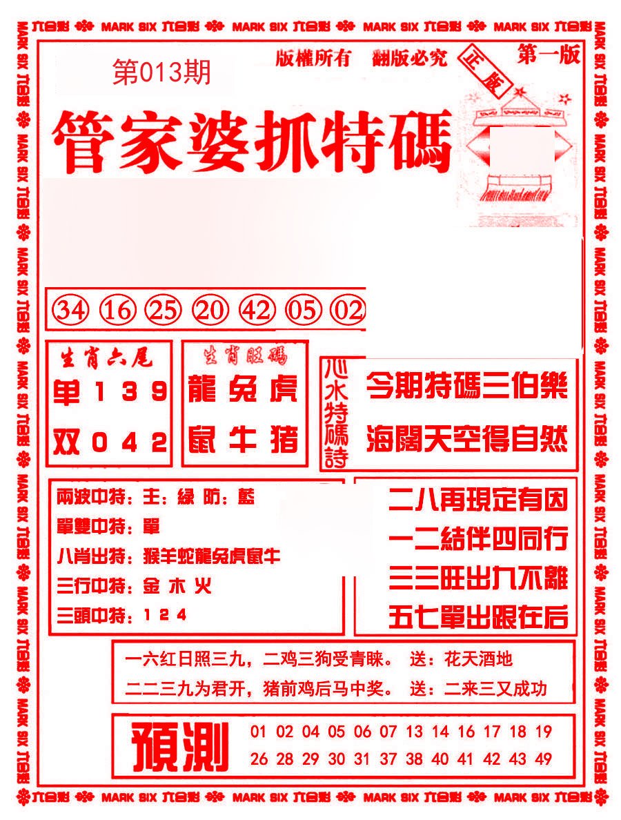013期:港澳福彩资料【绝中三肖】已上料!