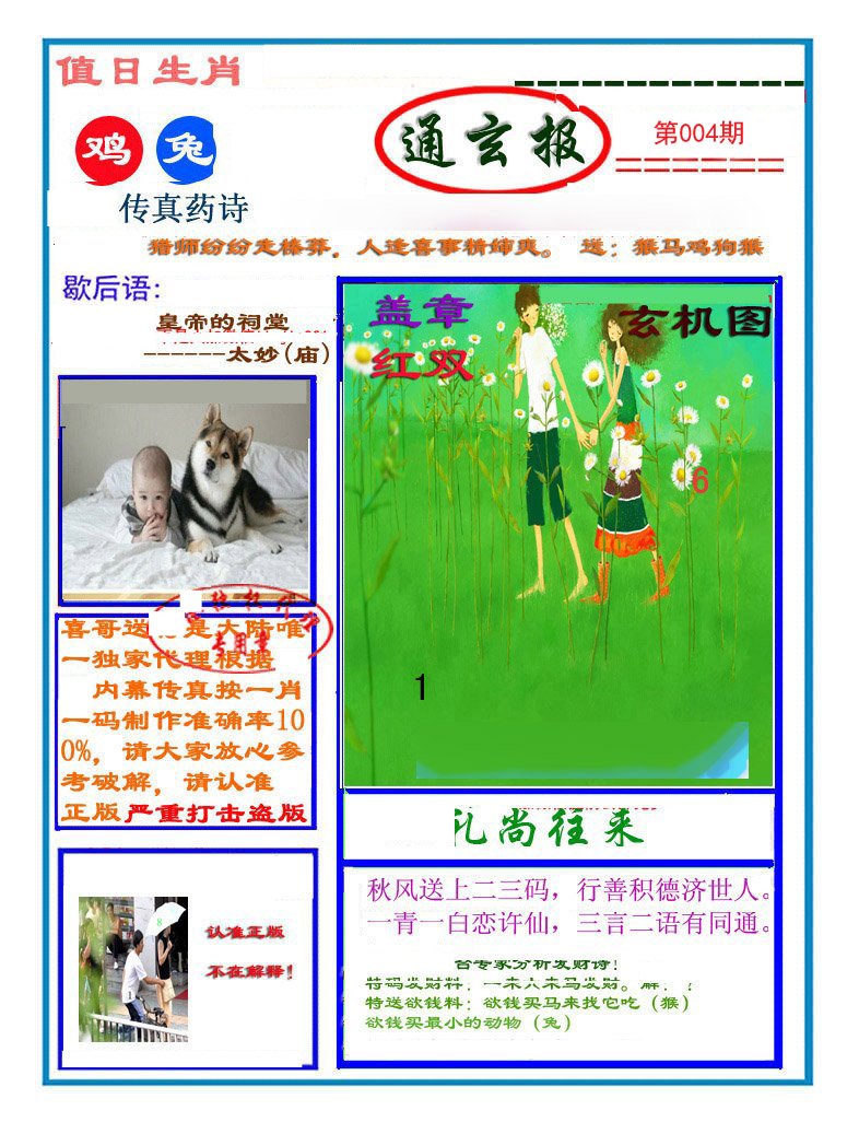 | 004期: ⑤肖 | 鸡兔猴牛马 | 狗20中 |