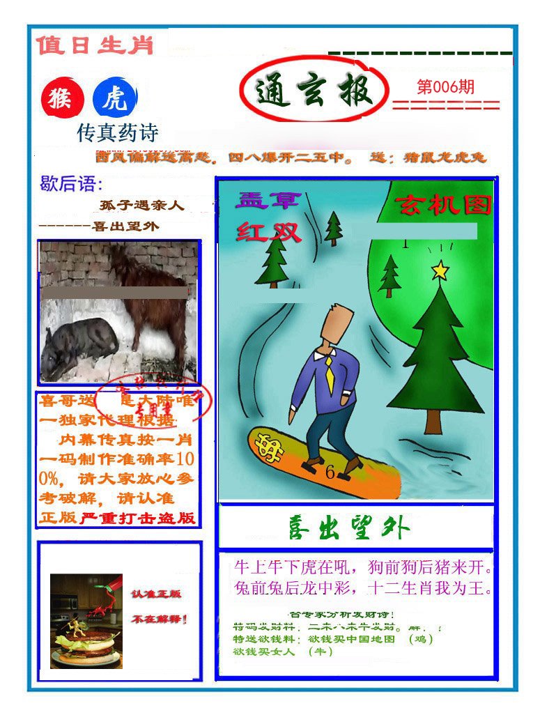 | 006期: ⑥肖 | 羊牛猴猪虎蛇 | 猴10中 |