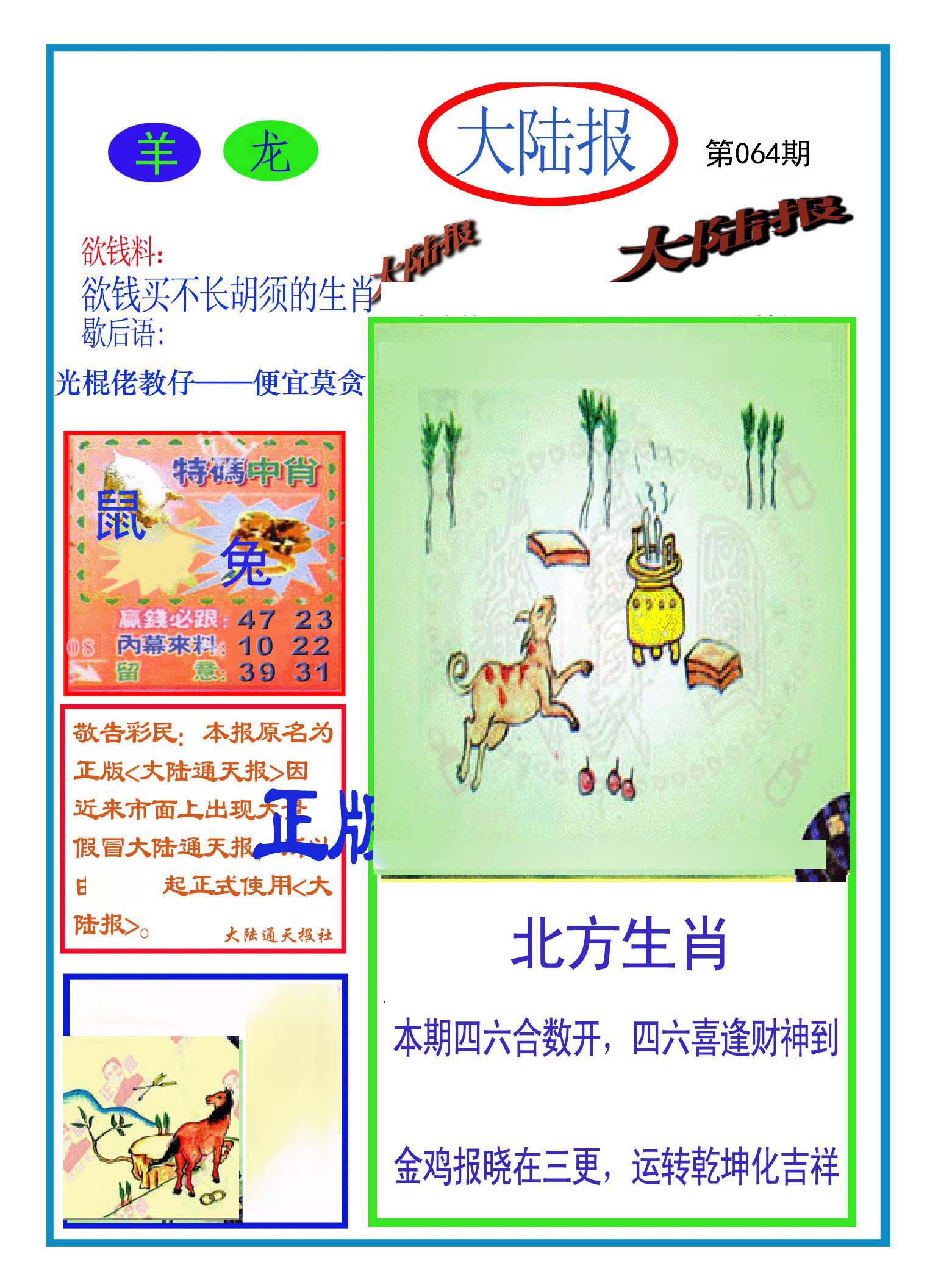 | 064期: ④肖 | 虎龙牛羊 | 虎17中 |