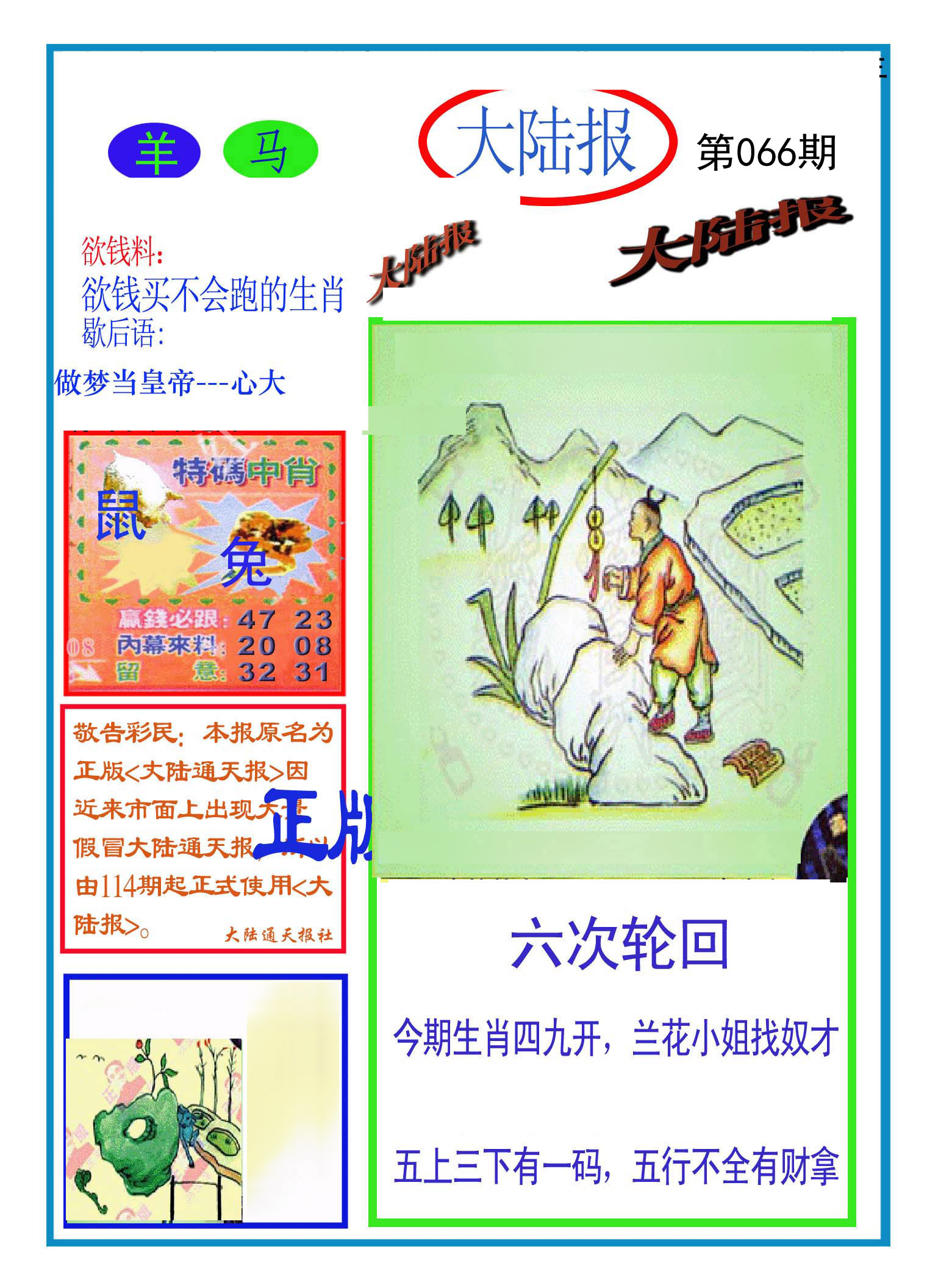 | 066期: ⑥肖 | 牛羊蛇猴狗兔 | 虎05中 |