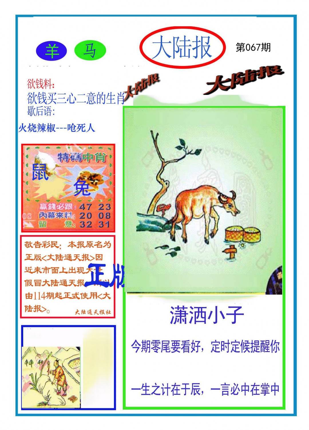 | 067期: ⑥肖 | 猴狗龙兔羊牛 | 兔28中 |