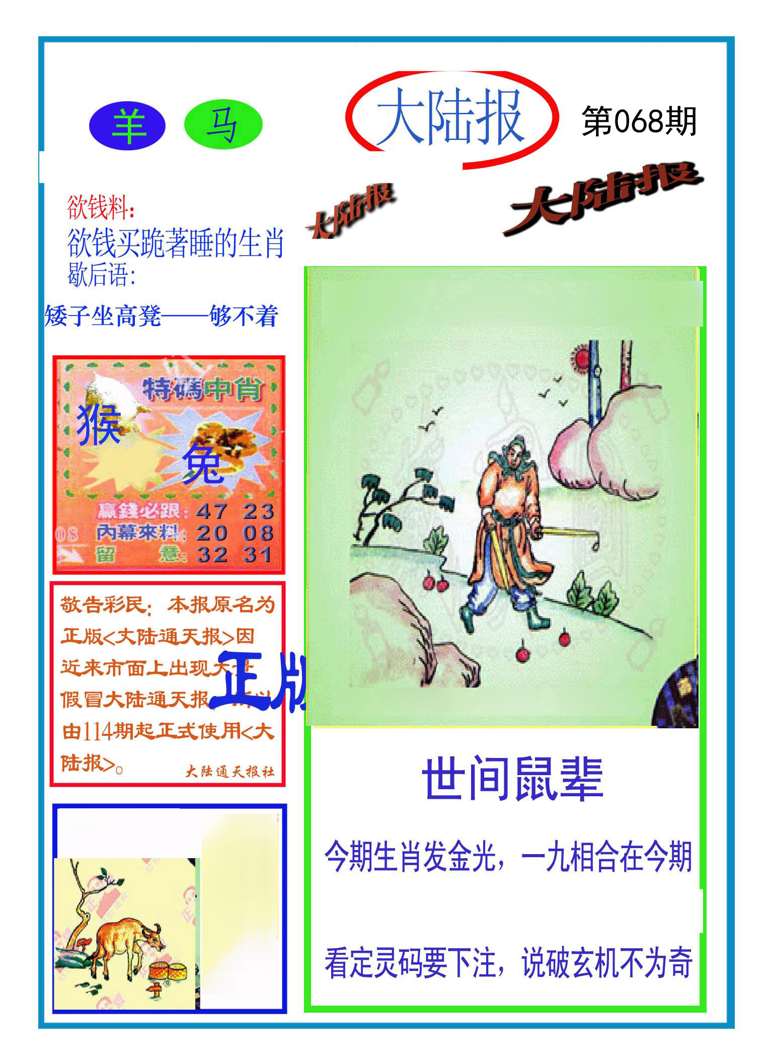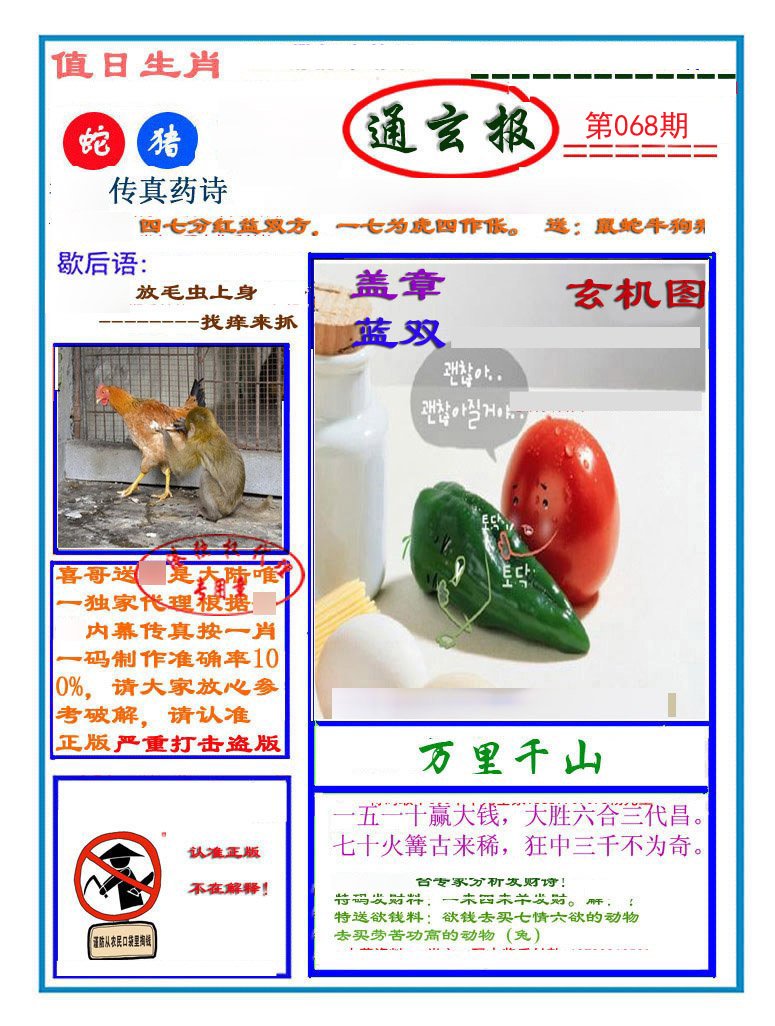 | 068期: ⑥肖 | 虎狗牛猴鼠猪 | 牛06中 |