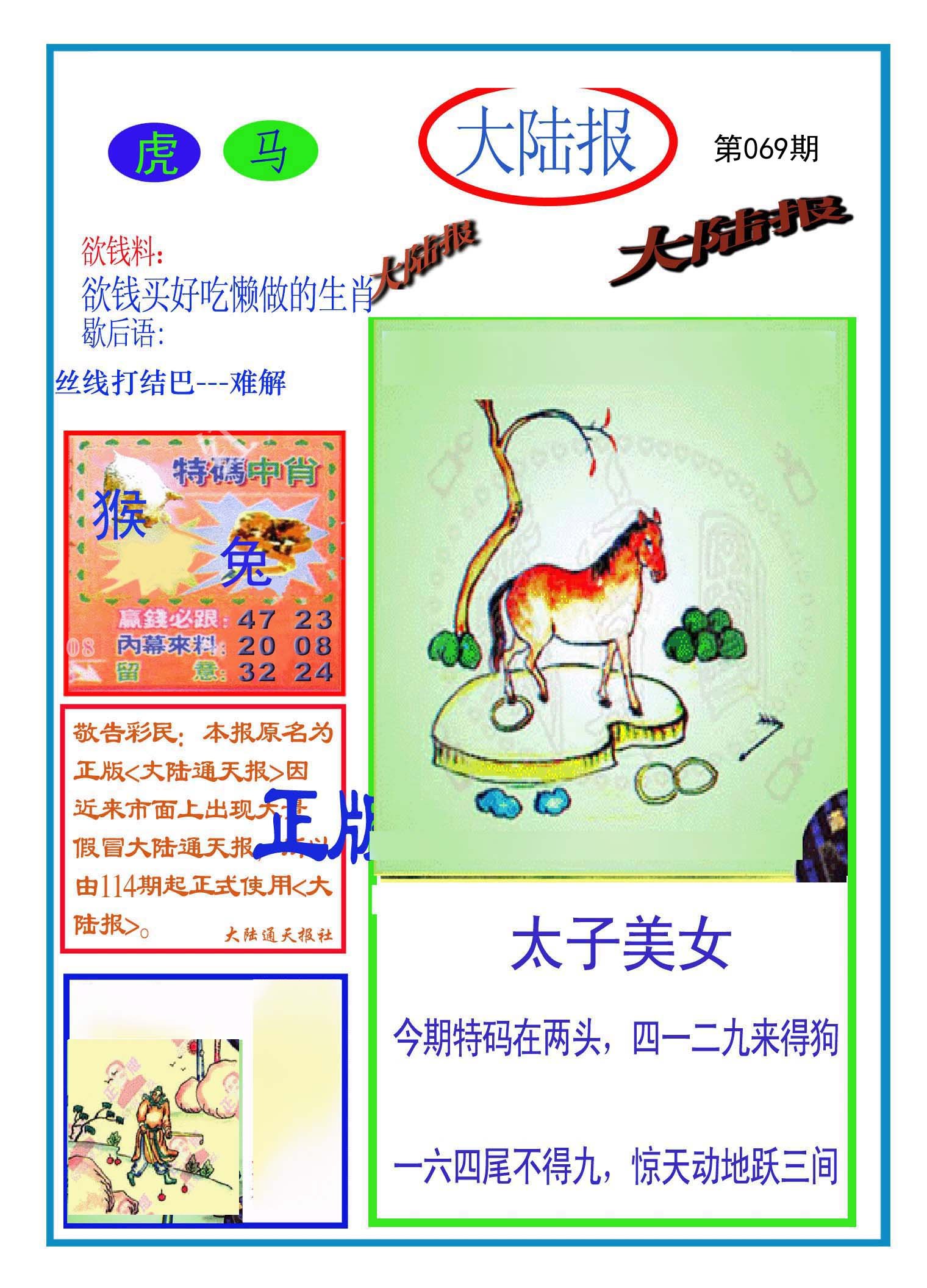 | 066期: ⑦肖 | 牛羊蛇猴狗兔虎 | 虎05中 |