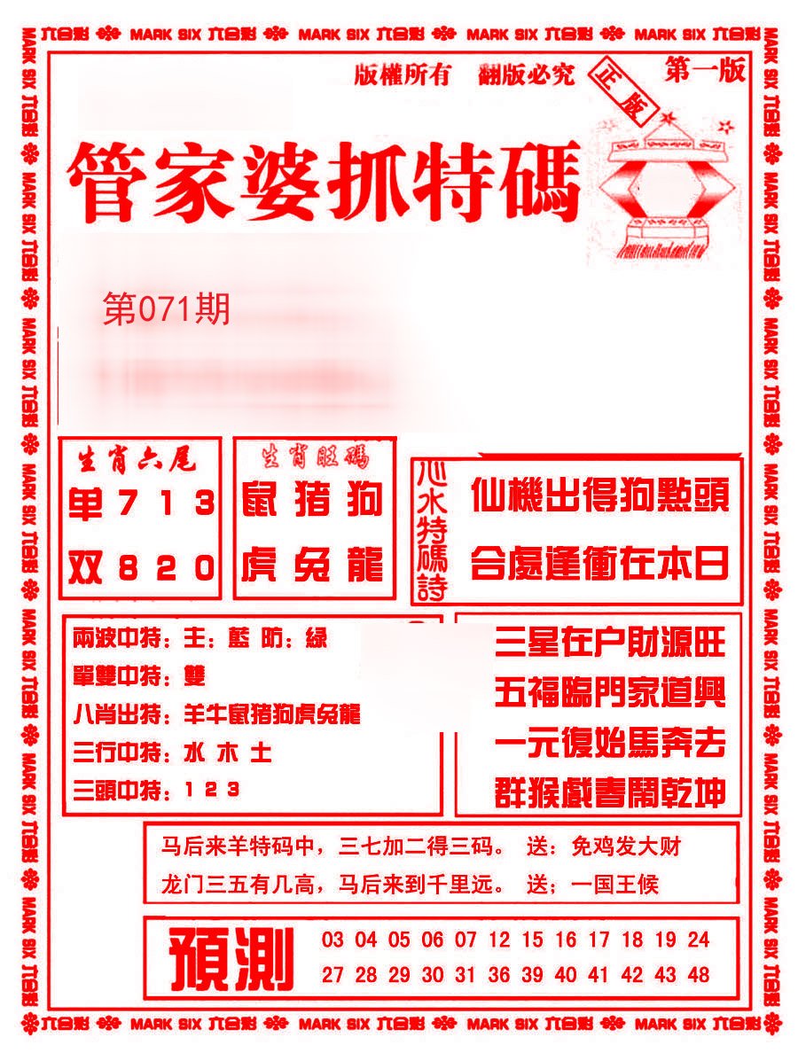 | 071期特开:(00?)准100% | |||||