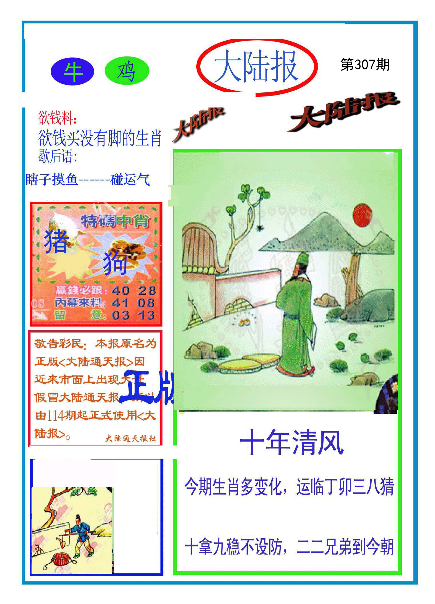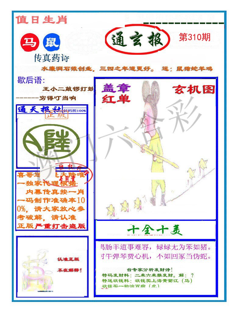 | 308期: ⑥肖 | 鸡蛇猴虎羊兔 | 羊35中 |