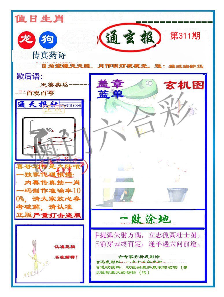 | 309期: ⑥肖 | 狗鸡猴鼠龙牛 | 兔27中 |