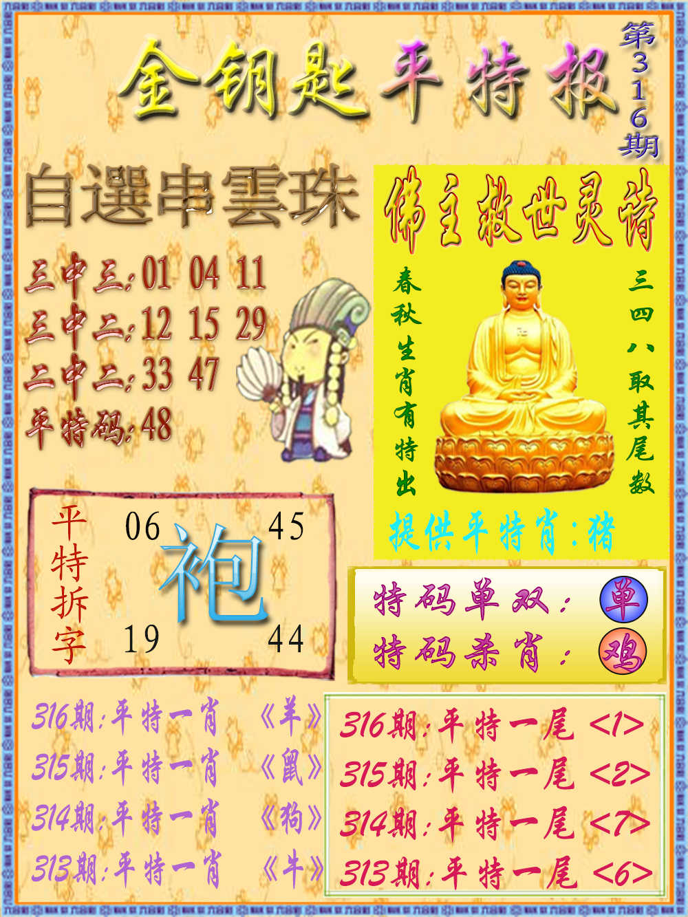 | 316期:公式一肖 | 316期:公式一波 | 316期:公式单双 |